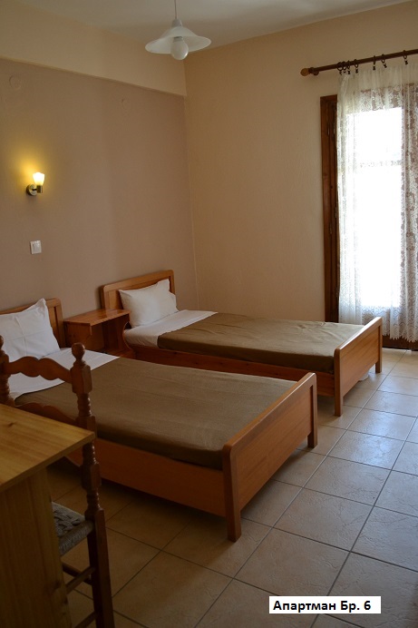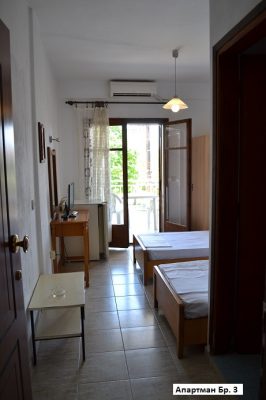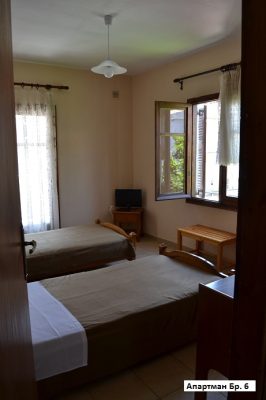 • Апартман 1/2– два единечни кревети, одвоена опремена кујна, бања, ТВ, тераса.