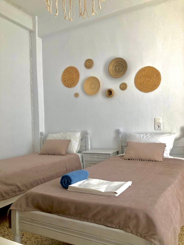 - Вила “Angela Zoi” e лоцирана на 800 метри од плажата Мегали Амос, во ценатарот на градот. Вилата располага со двокреветни, трикреветни, четирикреветни студија како и четирикреветни дуплекс апартмани. Сите соби се со комплетно опремена кујна, тоалет, балкон, ТВ, WiFi иклима уред.