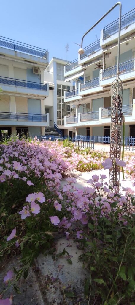 Вила ”BLUE” е лоцирана во центарот на Неа Плагија, во близина на таверната ,,Hriso Pagoni” и на околу 30 м. од плажа. Располага со 1/4+1 дуплекс, со две одделни спални соби во едната француски лежај, во другата спална соба два единечни кревети и едно дополнително легло на извлекување ,комплетно опремена кујна, WC, и голема тераса со страничен поглед на море.