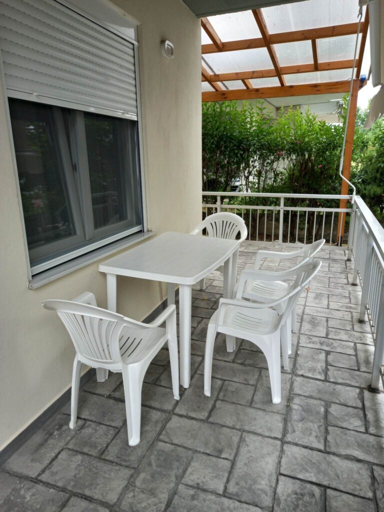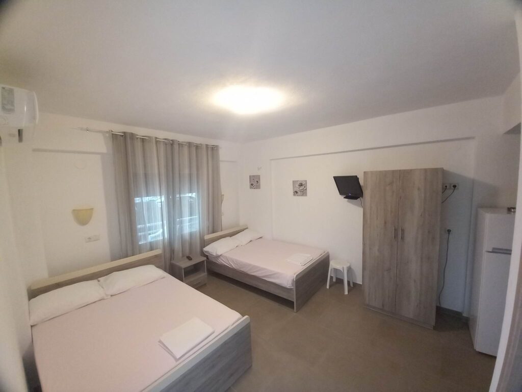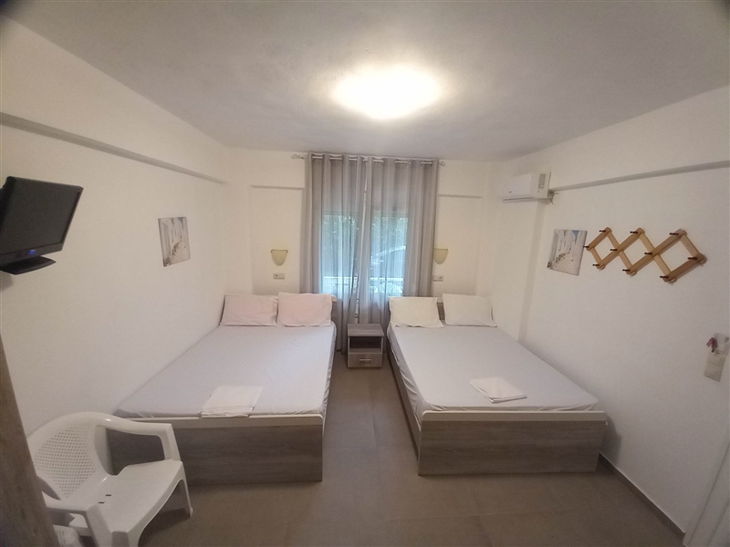 1/4 СТУДИО БР.2 – Се наоѓа на приземје, има заграден дел од дворот кој го користи како тераса. Студиото е опремено со кујна со голем фрижидер и решо, WC, два дупли кревети, тв и клима.