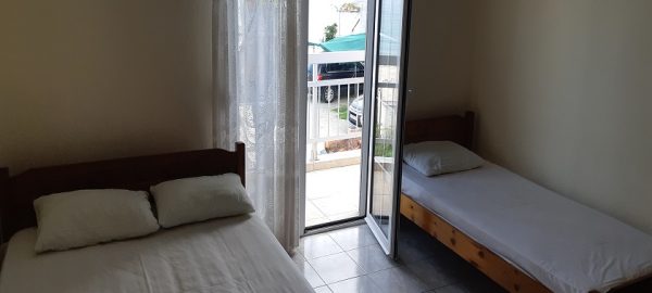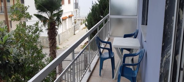 Апартманот располага со еден дупол кревет и два поединечни кревети на спрат,плакар за алишта.Во другата соба е кујната комплетно опремена со кујнски инвентар,решо со две рингли ,мал фрижидер, маса и столици за ручавање. Апартманот излегува на тераса со страничен поглед на море.Апартманот е опремен со клима уред, тв и купатило со вц.