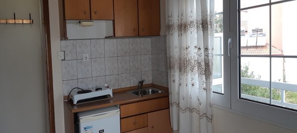 Студиото располага со еден дупол кревет и еден поединечен кревет,плакар за алишта.Во склоп на собата е кујната-комплетно опремена со кујнски инвентар,решо со две рингли ,мал фрижидер. Студиото излегува на двор со директен поглед на море.Студиото е опремено со клима уред, тв и купатило со вц.