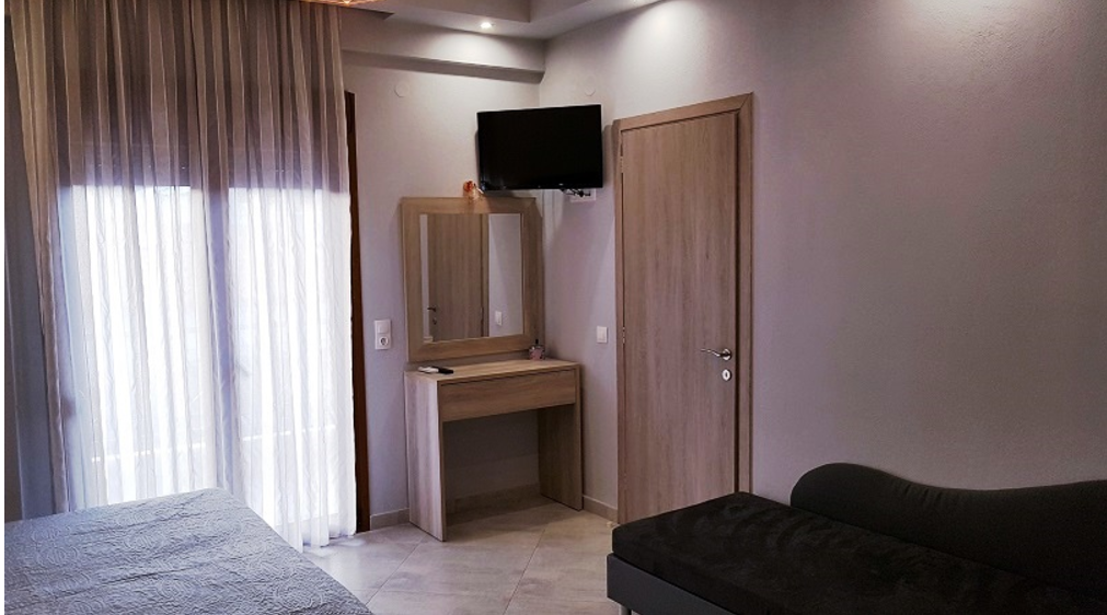 Вила “Maria Lux” се наоѓа во центарот на Ханиоти (веднаш до вила “Maria”) односно на почетокот на Плоштадот и нa oколу 150m oд плажа. Вилата е ново изградена во Октомври 2018 година. Располага со: комфортни струдија за три лица и апартмани со една спална соба за пет лица со големи тераси. Опис на собите: 1/3 студио на ниско приземје (сутерен) 1/3 студио на високо приземје и 3+2 апартмани со една спална на I и II кат. Сите се комфортни и комплетно опремени со нов мебел со: кујна (со комплетен прибор за онолку лица према број на легла + аспиратор, фрижидер…), тоалет, крпи за лице и тело, клима (БЕСПЛАТНА), ТВ, како и бесплатен интернет, гардеробер, сушара, широки балкони, масичка со столчиња со поглед напред на улицата, Плоштадот.. Ви посакуваме пријатен престој.