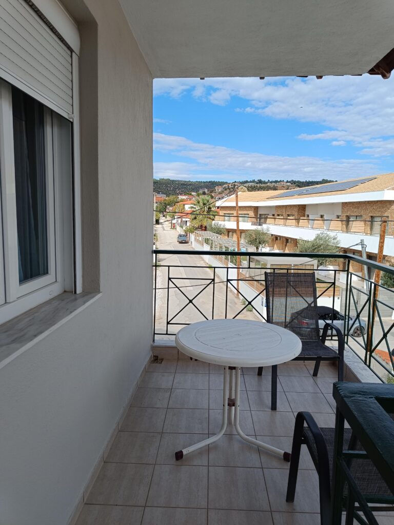 1/6 апартман се наоѓа на прв кат.Апартманот располага со две простории. Има брачен кревет во спалната соба и во другата просторија поврзана со кујна се наоѓаат 2 единечни кревети и кауч на спуштање.Кујната е целосно опремена, исто така има тоалет и балкон. Може да се сместат максимум 6 лица.