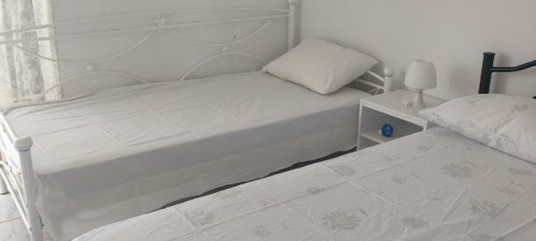 Апартманот располага со две простории. Во првата просторија е кујната која е комплетно опремена со кујнски инвентар, решо со две рингли, аспиратор, фрижидер,тв и клима уред и има 1 поединечен кревет и еден помошен кревет за дете до 12 год. Во втората просторија има 1 дупол кревет, плакар за алишта, тв.Од кујната се  излегува на тераса на која има маса со столици и тенда и прекрасен  поглед на море. Апартманот располага со стандардно купатило и вц.