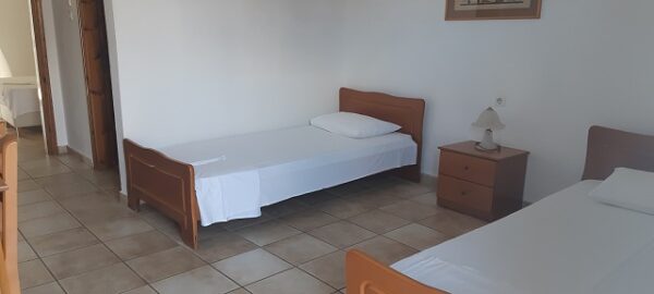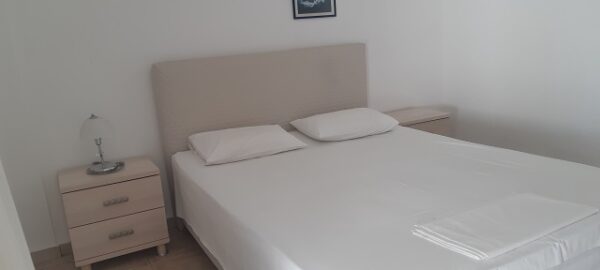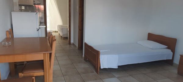 Апартманот располага со кујна ,една спална, купатило со WC и тераса со маса и столици. Во кујната има два поединечни кревети и кујната е комплетно опремена со кујнски инвентар,аспиратор,фрижидер и две рингли.Во кујната има простор за додавање на креветче на расклопување за фамилија со 3 деца.Во спалната соба има еден дупол кревет плакар за алишта,клима уред и тв.Од спалната се излегува на тераса со маса и столици.Апартманот е опрмен на сите прозори со комарници.