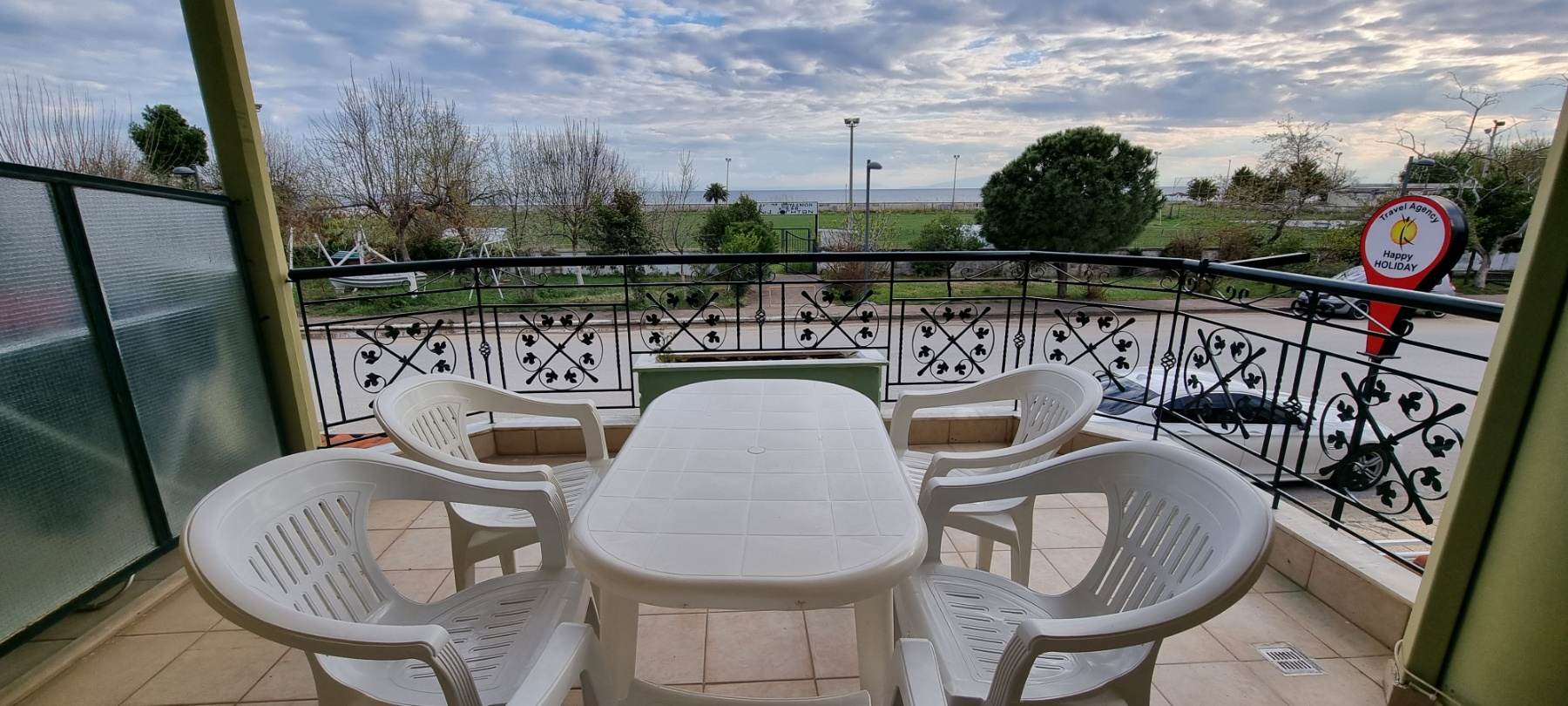 Вила СТЕЛА е лоцирана во близина на игралиштето на Неа Флогита 50 метри од плажа, со поглед на море. Апартманот е 6-креветен на први спрат. Располага со 2 простории. Спална соба со брачен и единечен кревет од која се излегува на тераса, купатило, дневна соба со три единечни кревети, во истата просторија е кујната – опремена со голем фрижидер и шпорет со релна и тераса со поглед на море. Климата и ТВ се во дневната просторија.