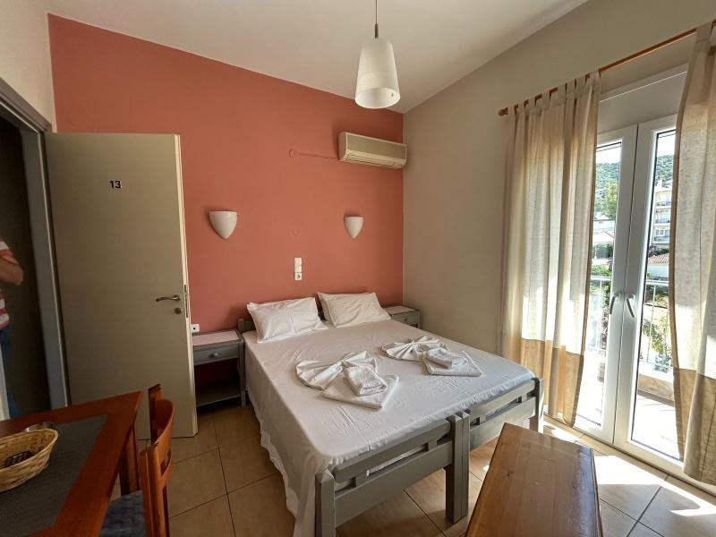 Вилата во својот состав располага со повеќе типови на студија и апартмани за одмор. Сместен на растојание од околу шесетина метри од шеталиштето и центарот на градот, а од познатата плажа со термални извори не повеќе од осумстотни метри, овој објект претставува одличен избор за сместување во Едипсос. Покрај лифт, рецепција и мало лоби, објектот во својот состав вбројува и студија и апартмани од кои дел се наоѓаат на високото приземје, а другите на првиот и вториот кат од неговата зграда. Во зависност од ориентацијата, од балконите се пружаат погледи кон улицата, дворот или морето. Сите студија и апартмани се опремени со соодветен мебел, мини кујна, ТВ и клима уред (со доплата 3 евра по ден), како и WI-FI интернет за потребите на нивните гости.