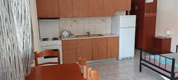 Апартманот располага со кујна ,една спална, купатило со WC и тераса со маса и столици со страничен поглед на море. Во кујната има два поединечни кревети,тв,клима уред и кујната е комплетно опремена со кујнски инвентар ,аспиратор,голем фрижидер,ел.шпорет со рерна. Во спалната соба има еден дупол кревет со натказни.Од кујната се излегува на тераса со маса и столици со страничен поглед на море.И од спалната се озлегува на тераса со маса и столици. Во ходникот има плакар за алишта. Апартманот е опрмен на сите прозори со комарници.