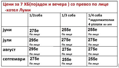 цената е за 6ХБ (доручек и вечера и вклучен превоз!