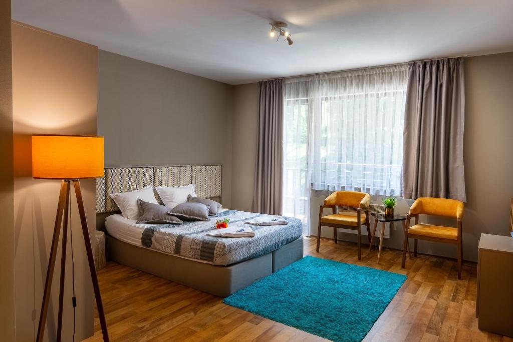 | Во цената е вклучено : користење на финска сауна, сауна со ароматерапија, солена соба, 2 џакузи, ски гардеробер, паркинг, интернет |
